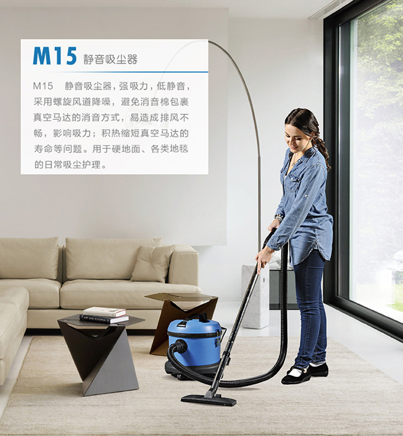 M15房务吸尘器,用于硬地面、各类地毯的日常吸尘护理。特别适用于宾馆、酒店、会所、俱乐部、办公楼、会议中心、餐饮等铺设地毯之场所。